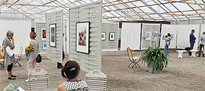 Stora växthuset rymmer vårt ljusa och rymliga galleri som enkelt kan anpassas till olika konstutställningar.